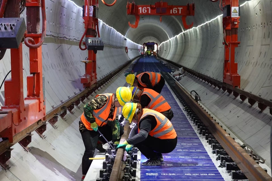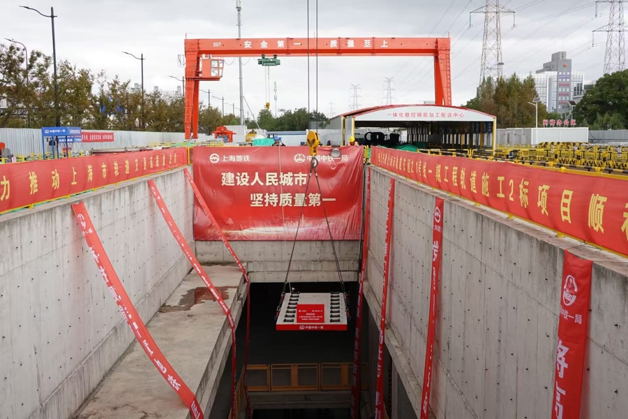 21号线将大量采用预制轨道板工艺进行轨道铺设,包括普通预制轨道板、预制钢弹簧浮置板、预制道岔板、预制内置泵房板等多种预制板整体道床结构。为提高施工质量、提升作业效率、降低安全风险,自进场以来,建设集团第四分公司及各参建单位不断优化施工组织与关键工艺,持续科技创新,依托机械化、智能化铺轨设备,铺轨效率较传统施工方式提升约20%,有力保障了工程建设的优质高效推进。